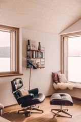 Innenausbau mit regionalem Holz, sorgfältig ausgewählten Möbeln und Designklassikern